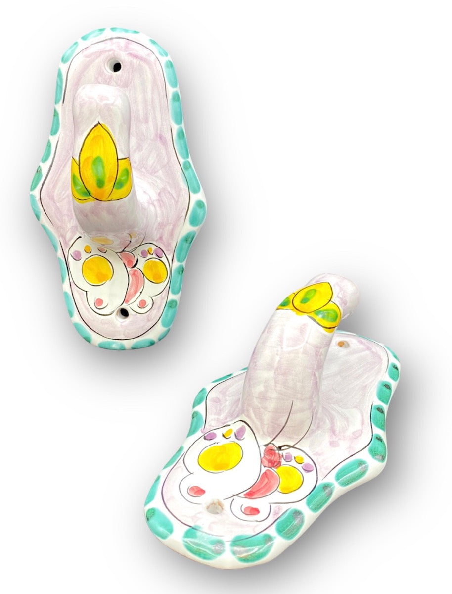 Gancio porta accappatoio in ceramica vietrese, decorato completamente a mano secondo la tradizione ceramista di esperti artigiani italiani.