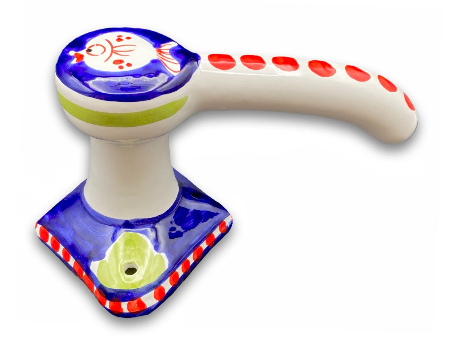 Porta rotolo per carta igienica in ceramica vietrese, decorato completamente a mano secondo la tradizione ceramista di esperti artigiani italiani.