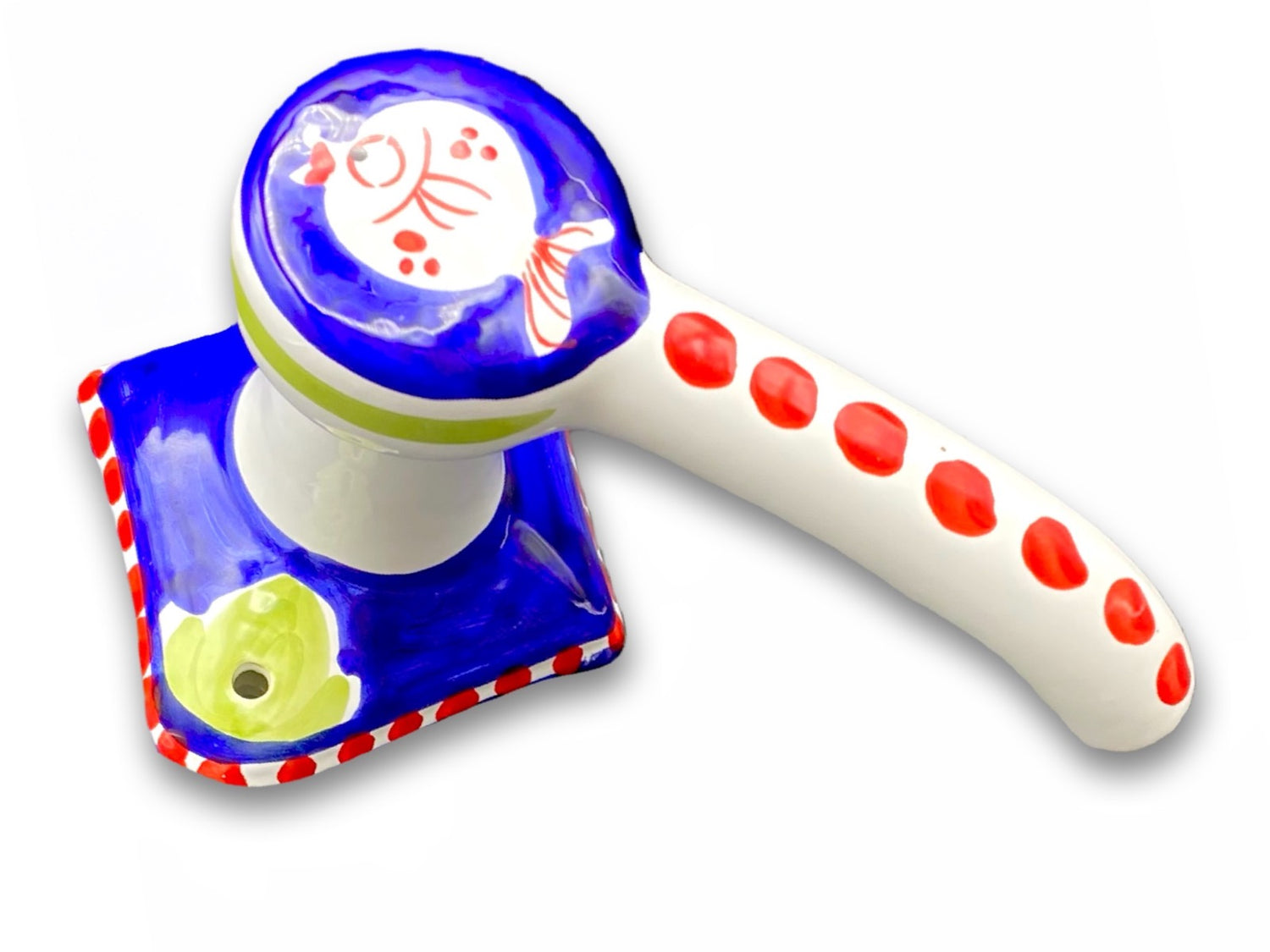 Porta Rotolo Carta Igienica in ceramica vietrese DECORO PESCE PALLA