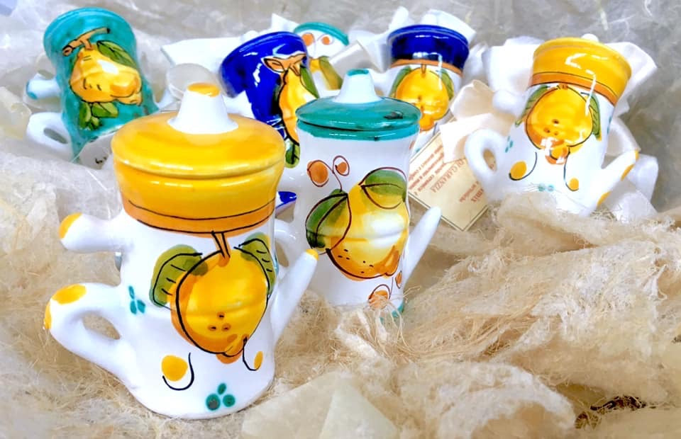 Calamita in ceramica vietrese a forma di caffettiera napoletana, ideale come bomboniera per lasciare ai tuoi ospiti un meraviglioso ricordo del tuo evento…il tutto sempre realizzato a mano e curato in ogni dettaglio.