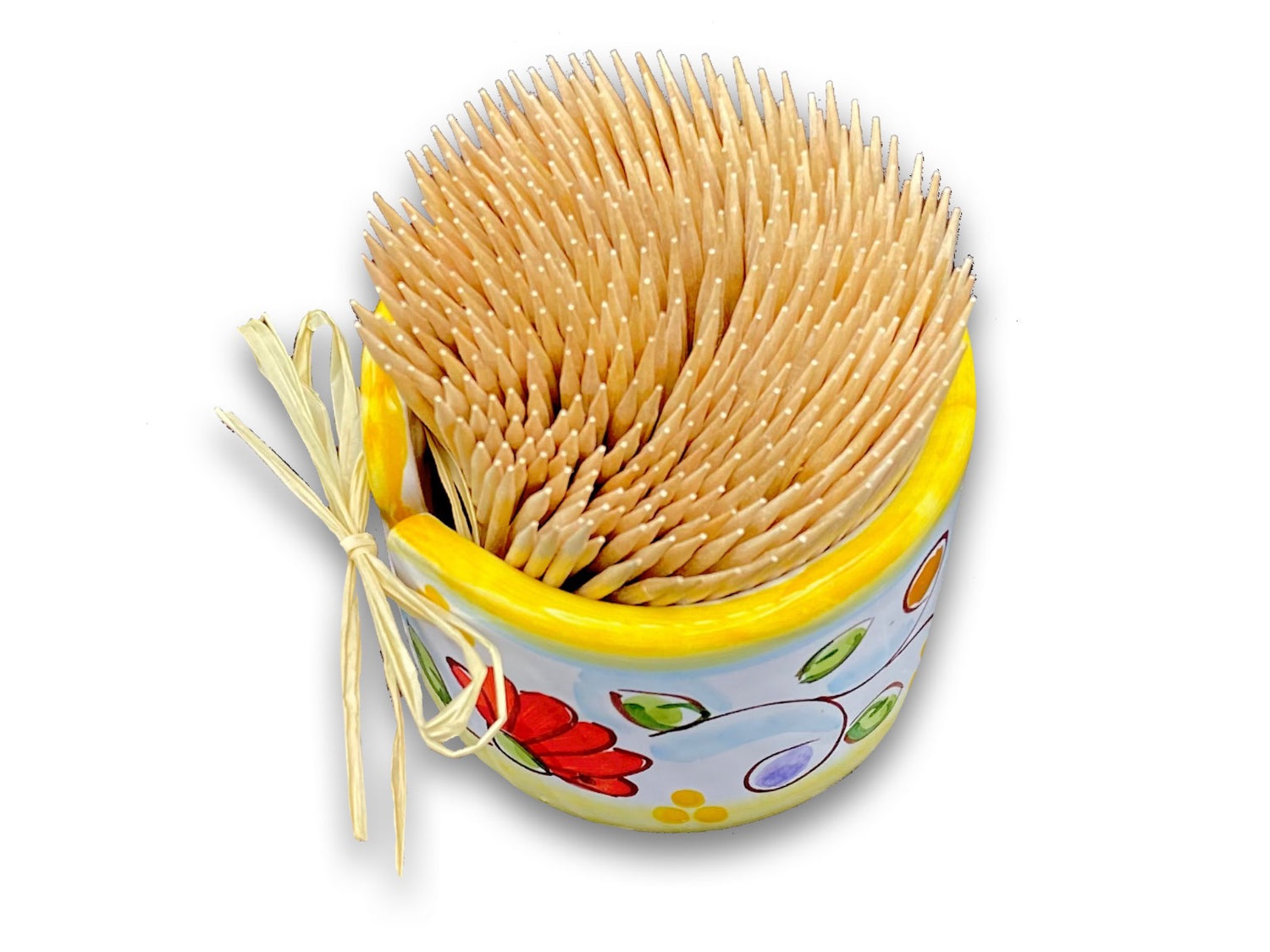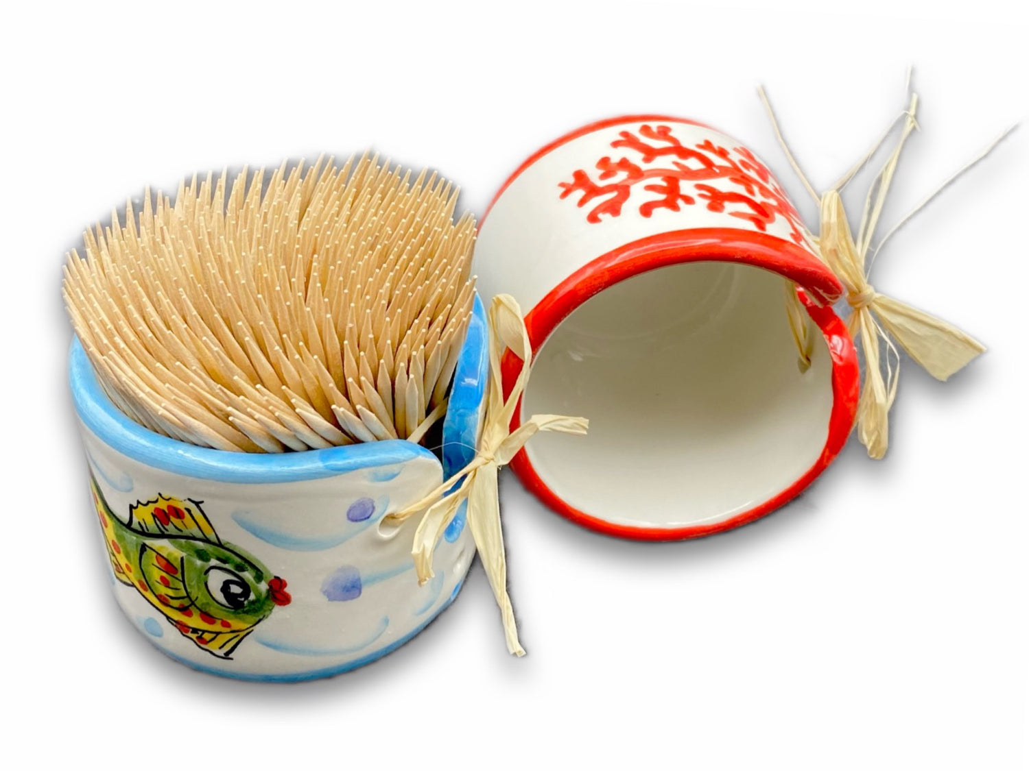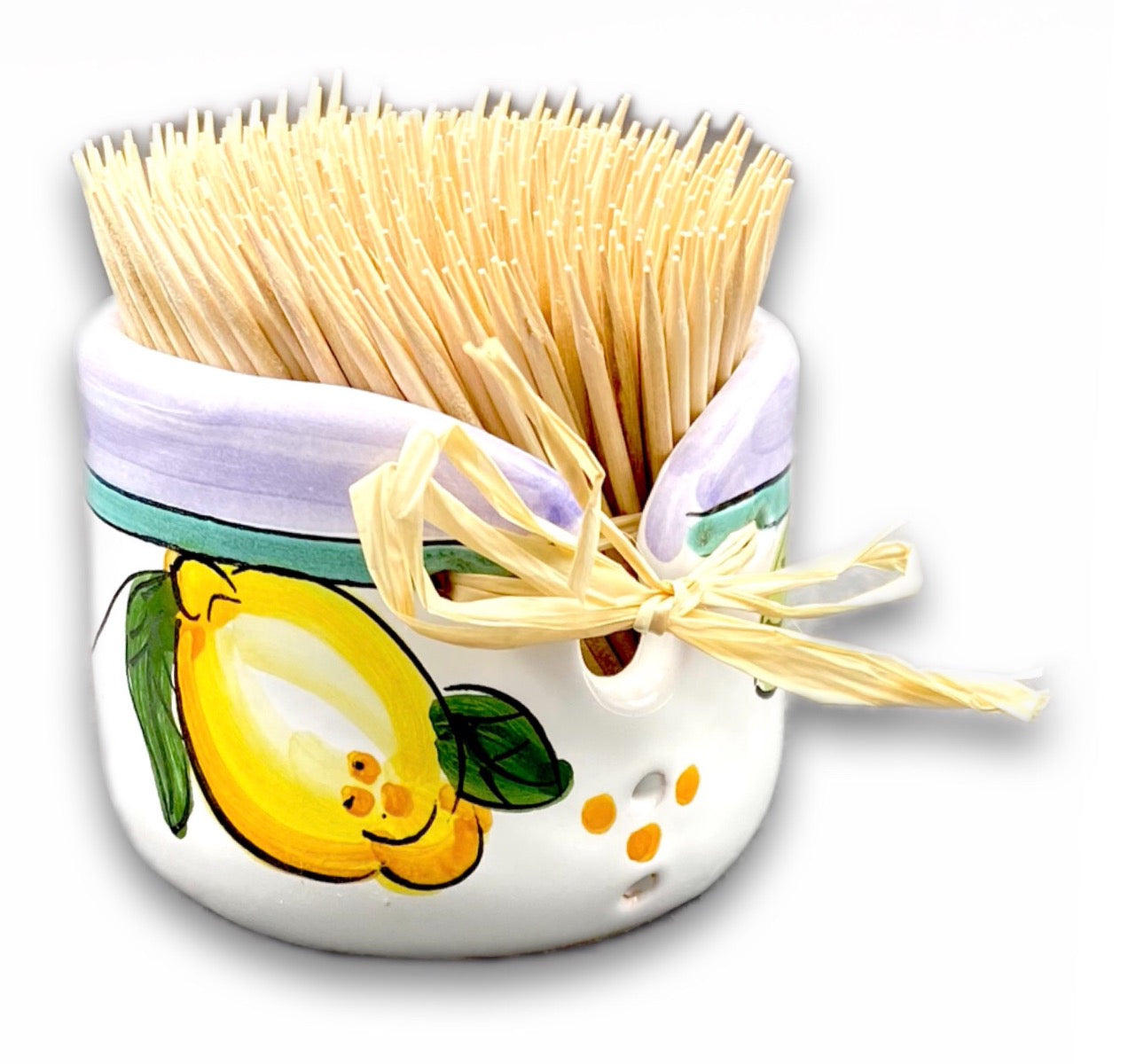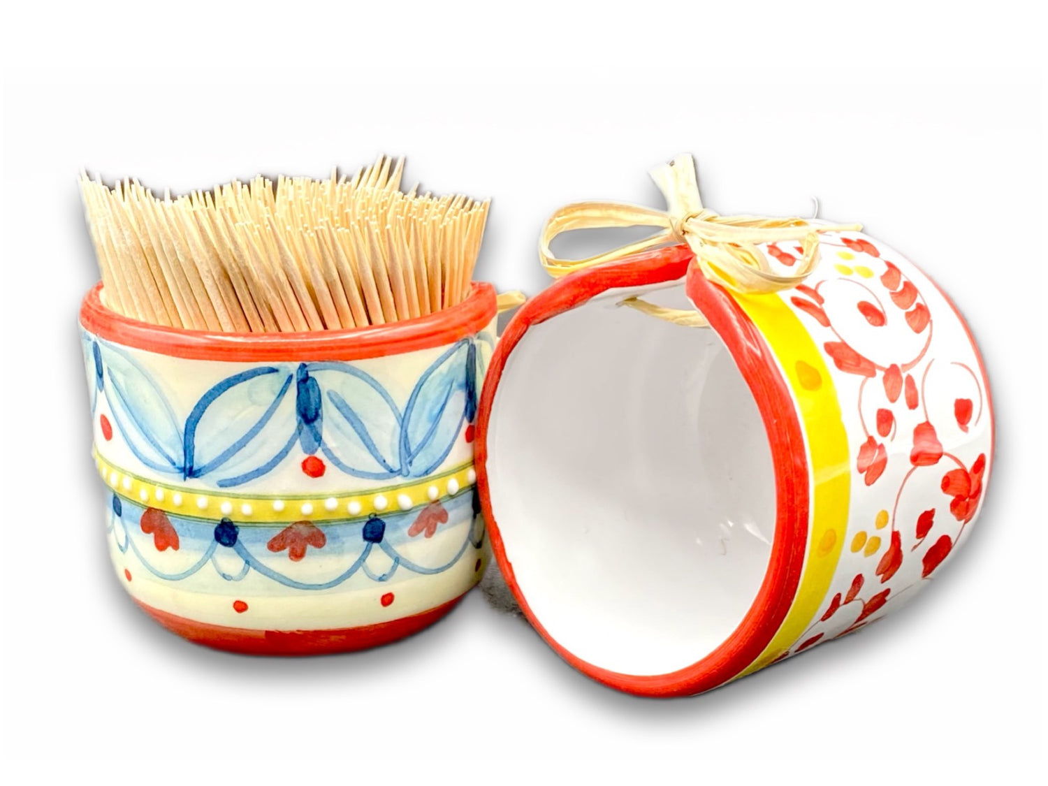 Cilindretto porta stuzzicadenti in ceramica vietrese, realizzato completamente a mano secondo la tradizione ceramista di esperti artigiani italiani.
