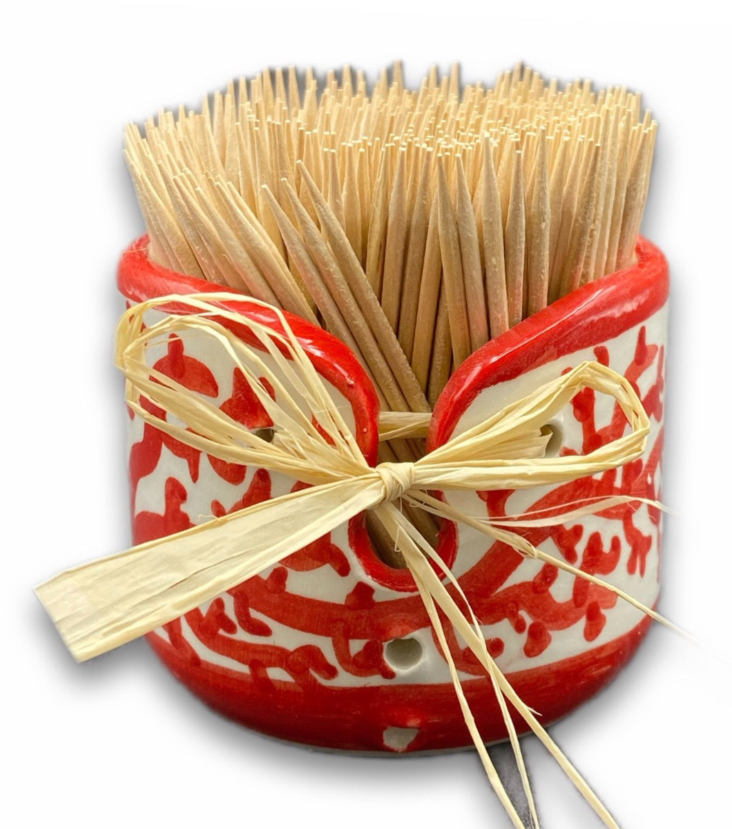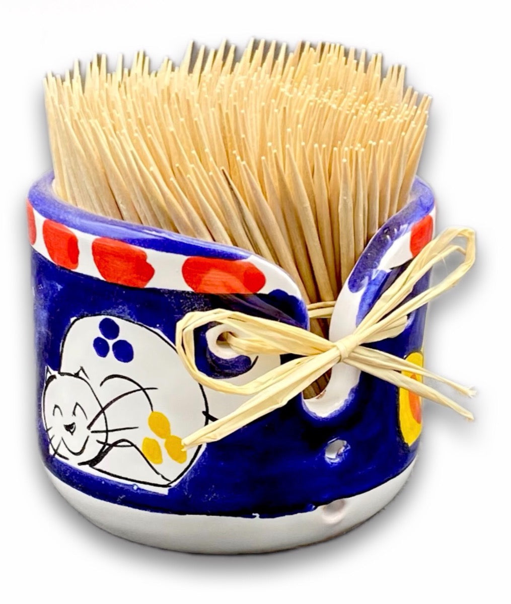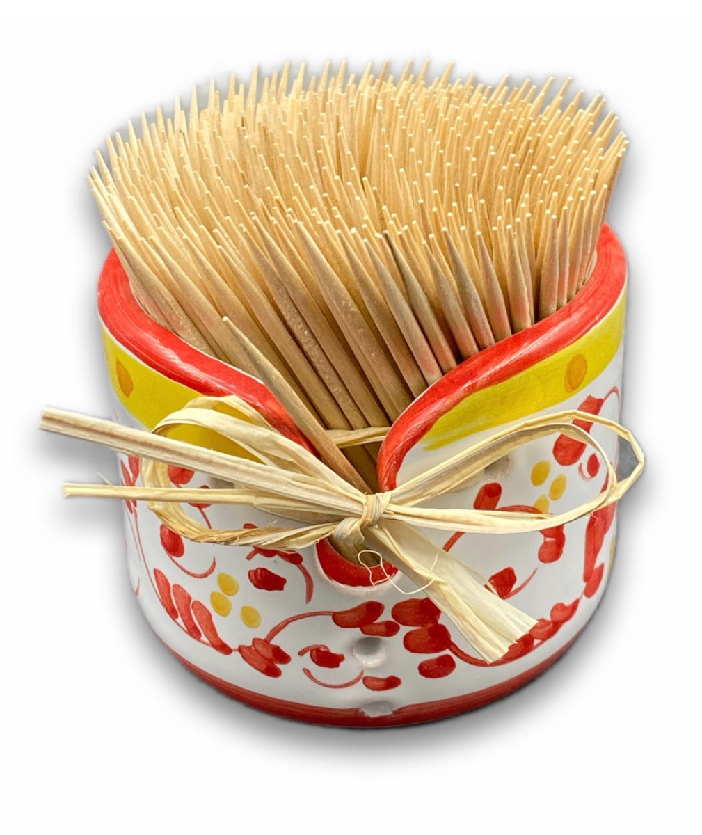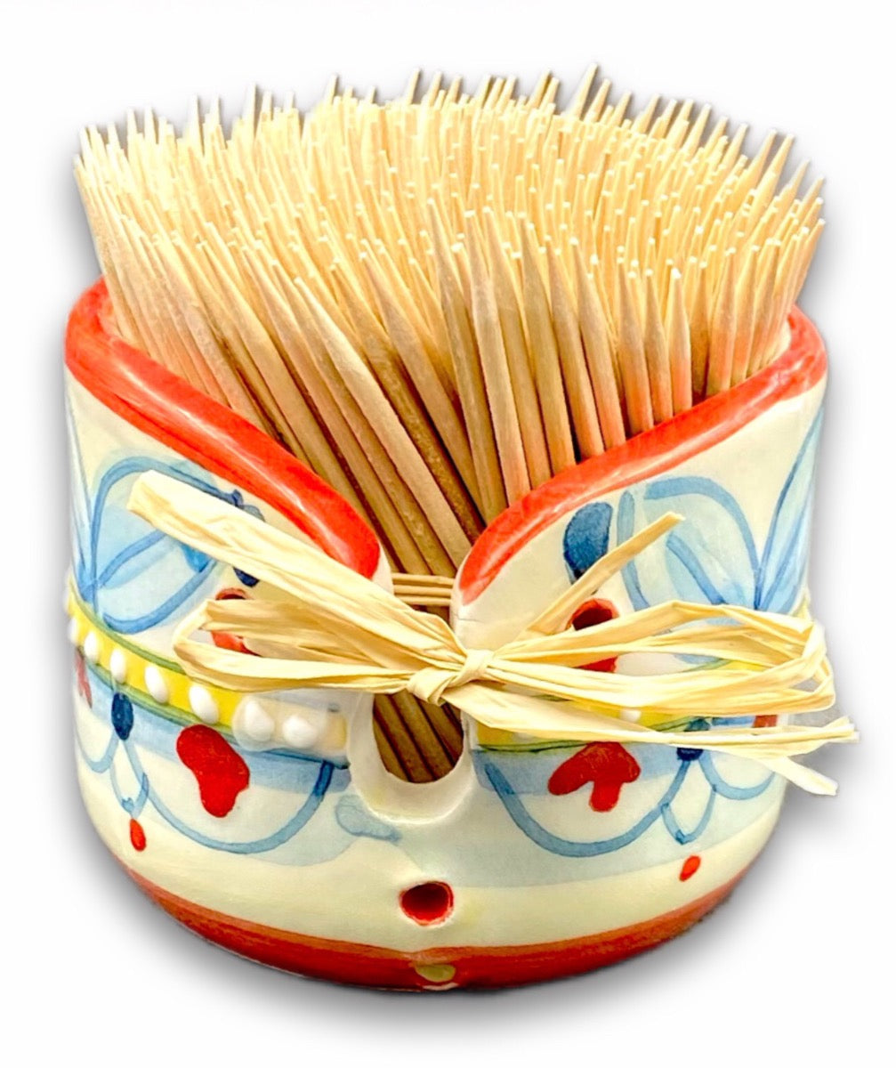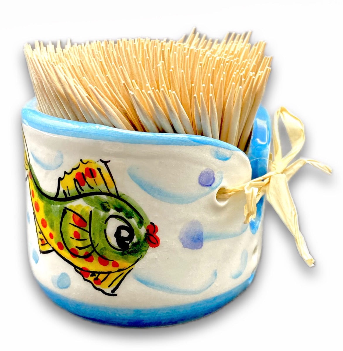 Cilindretto porta stuzzicadenti in ceramica vietrese, realizzato completamente a mano secondo la tradizione ceramista di esperti artigiani italiani.