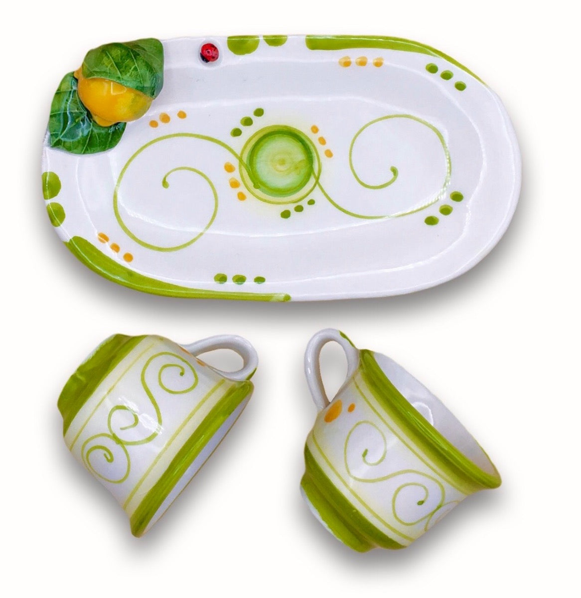 Servizio Caffè x 2 in Ceramica Vietrese APPLICAZIONE LIMONI