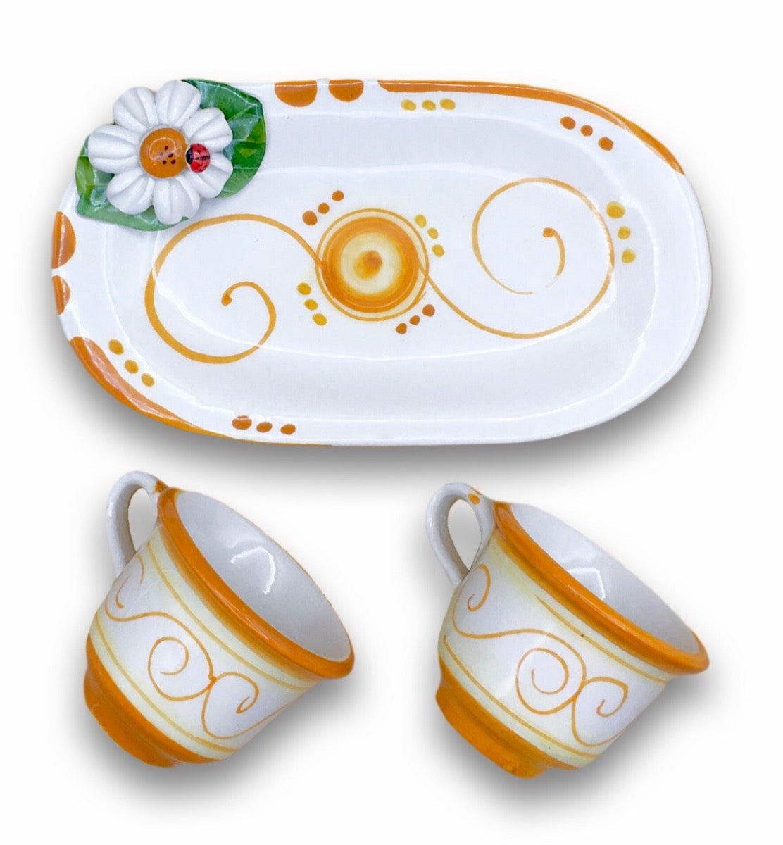 Servizio Caffè x 2 in Ceramica Vietrese APPLICAZIONE MARGHERITE