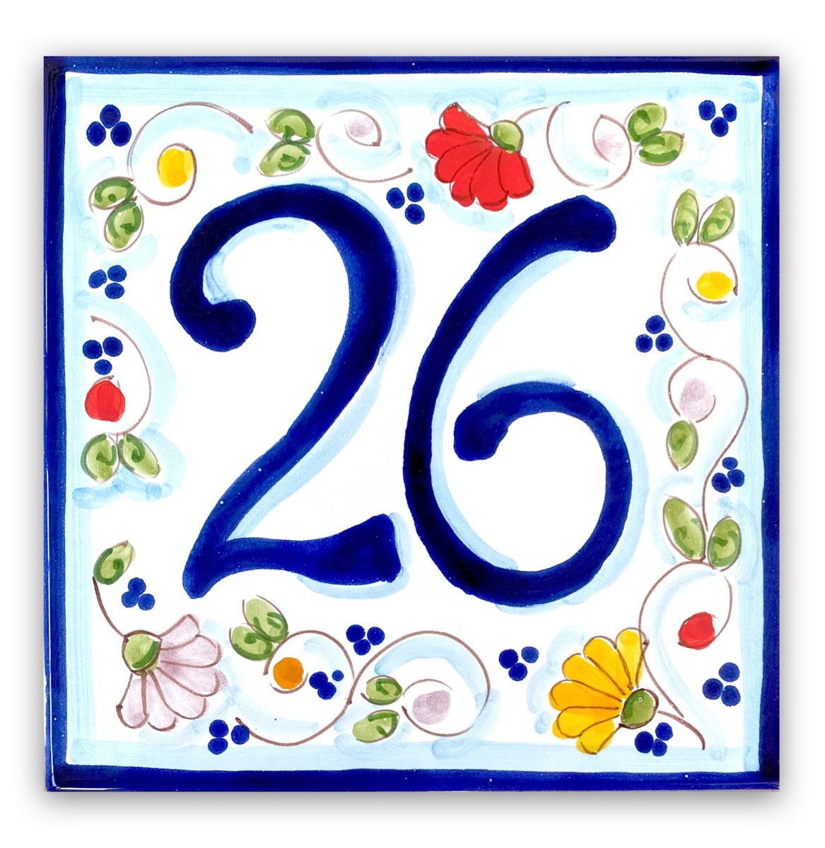 Mattonella in ceramica vietrese dal motivo “Primula New” ideale da utilizzare come fuori porta o come indicazione esterna per ville.