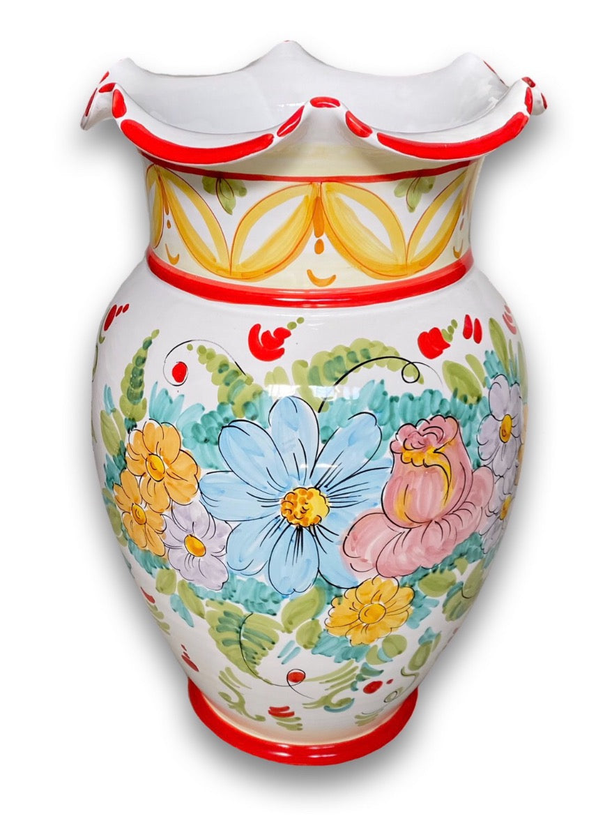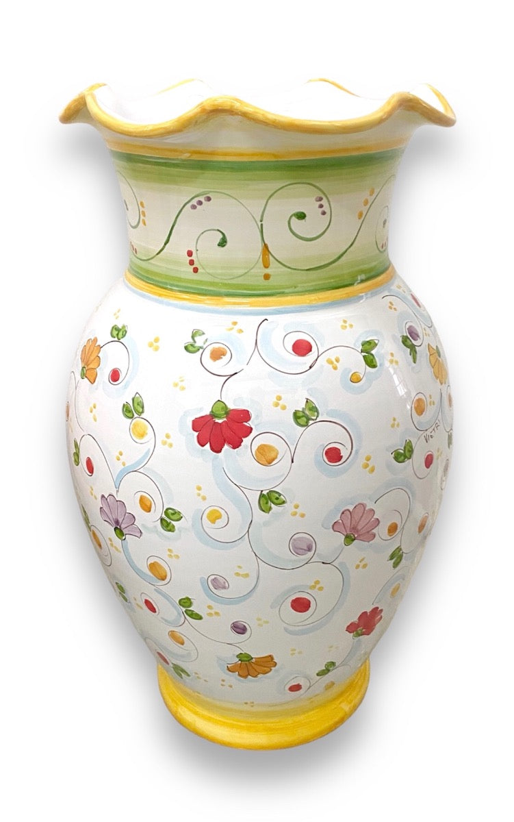 Vaso porta ombrelli smerlato, in ceramica vietrese, realizzato a mano grazie alla maestria di artigiani ceramisti che fanno del “made in Italy” la loro passione.