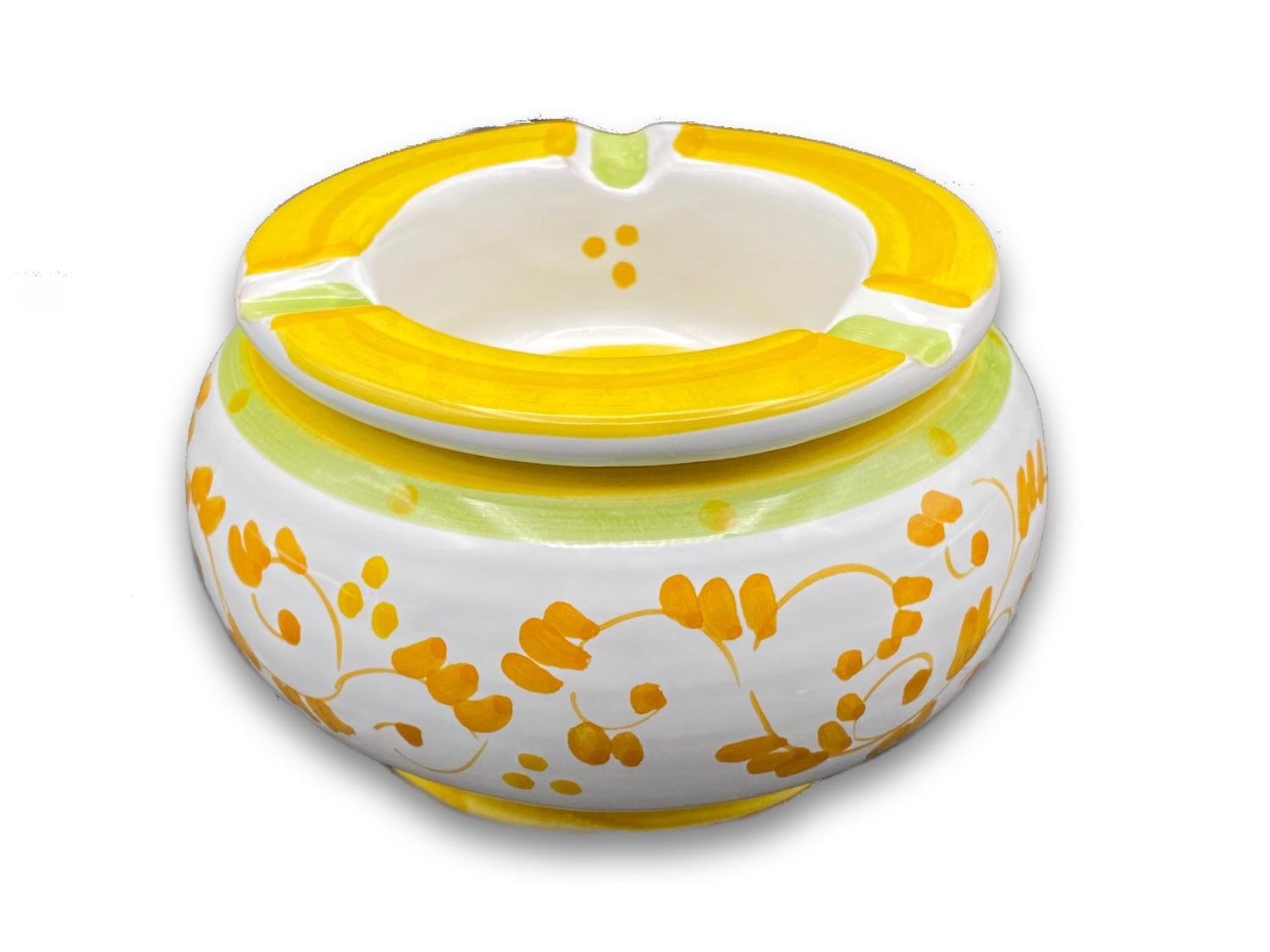 Posacenere antivento in ceramica vietrese composto da due pezzi, interamente realizzato a mano da esperti artigiani italiani, il cui lavoro minuzioso rende unica e preziosa la realizzazione di ogni singolo dettaglio.