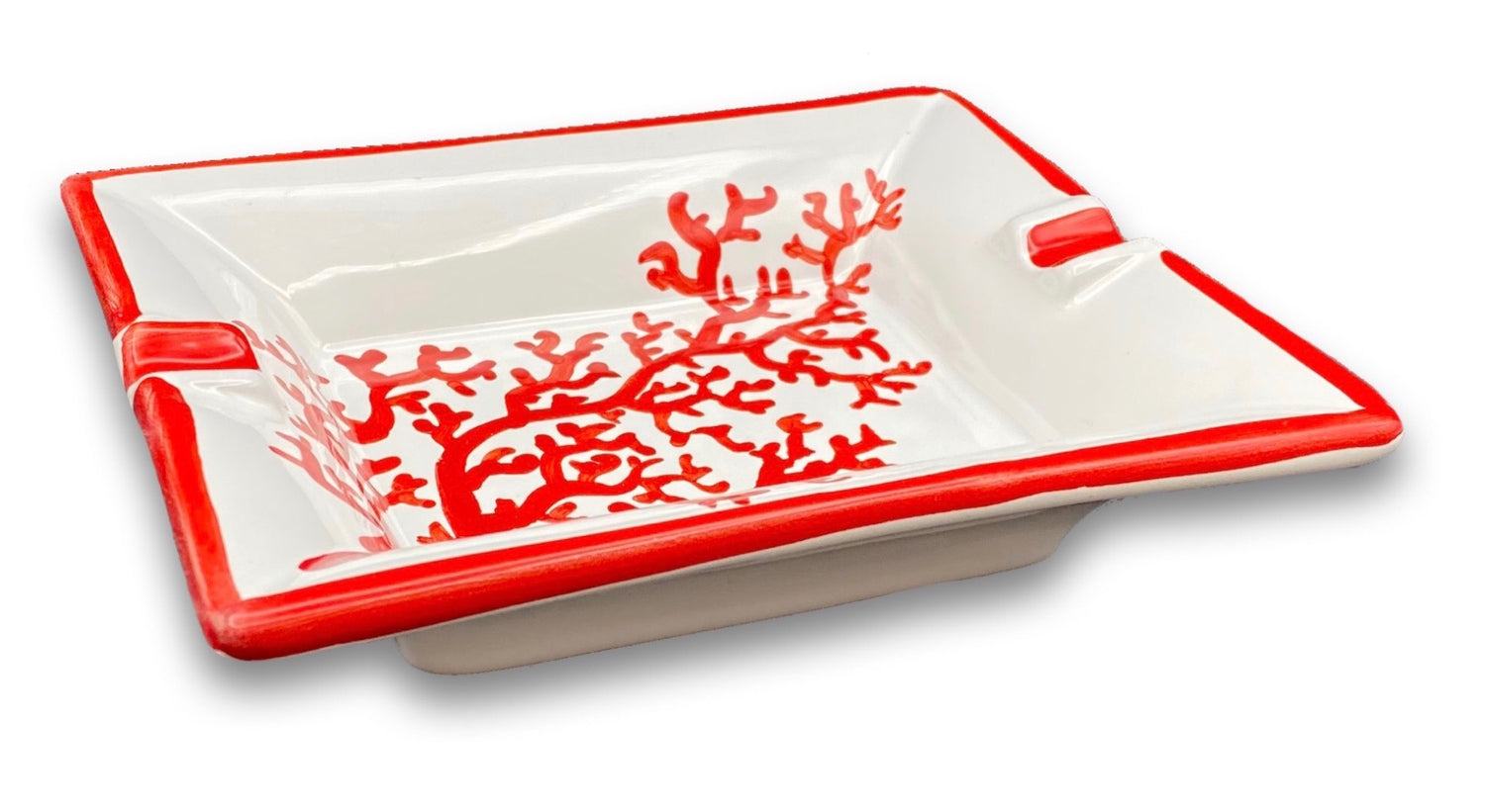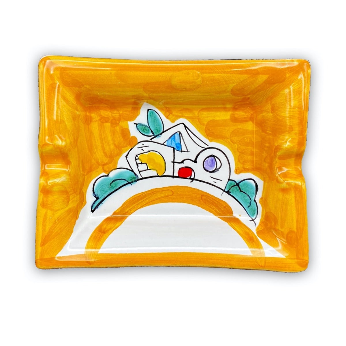 Posacenere dalla forma rettangolare in ceramica vietrese, realizzato a mano grazie alla maestria di artigiani ceramisti che fanno del “made in Italy” la loro passione.