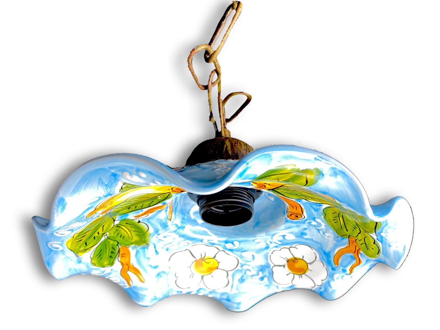 Lampadario in ceramica vietrese decorato a mano e curato in ogni singolo dettaglio da maestri ceramisti italiani.
