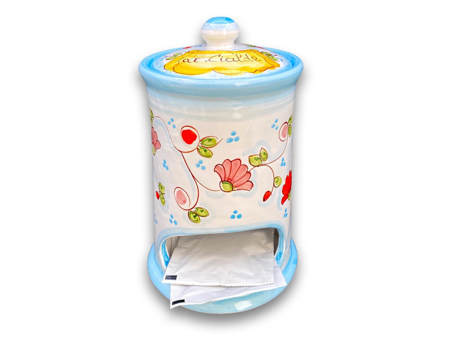 Contenitore ideale per cialde o capsule di caffè in ceramica vietrese, interamente decorato a mano da esperti artigiani italiani, il cui lavoro minuzioso rende unica e preziosa la realizzazione di ogni singolo dettaglio.