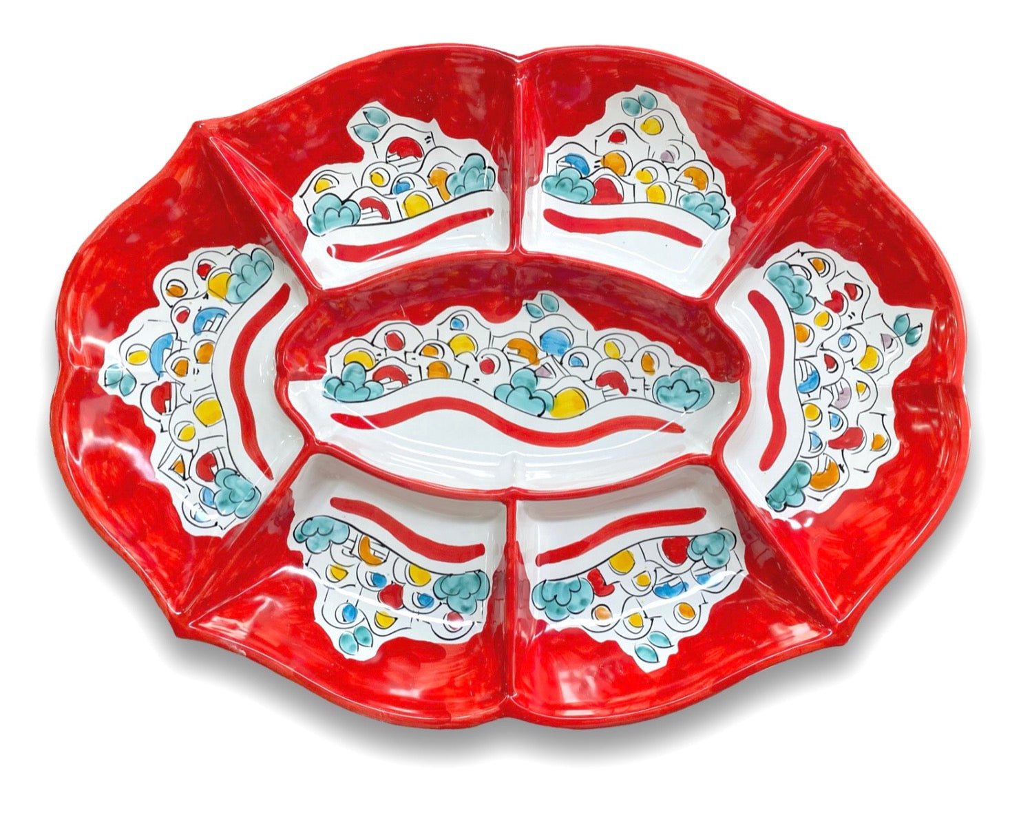 Antipastiera Ovale Monoblocco in ceramica vietrese DECORO NAIF