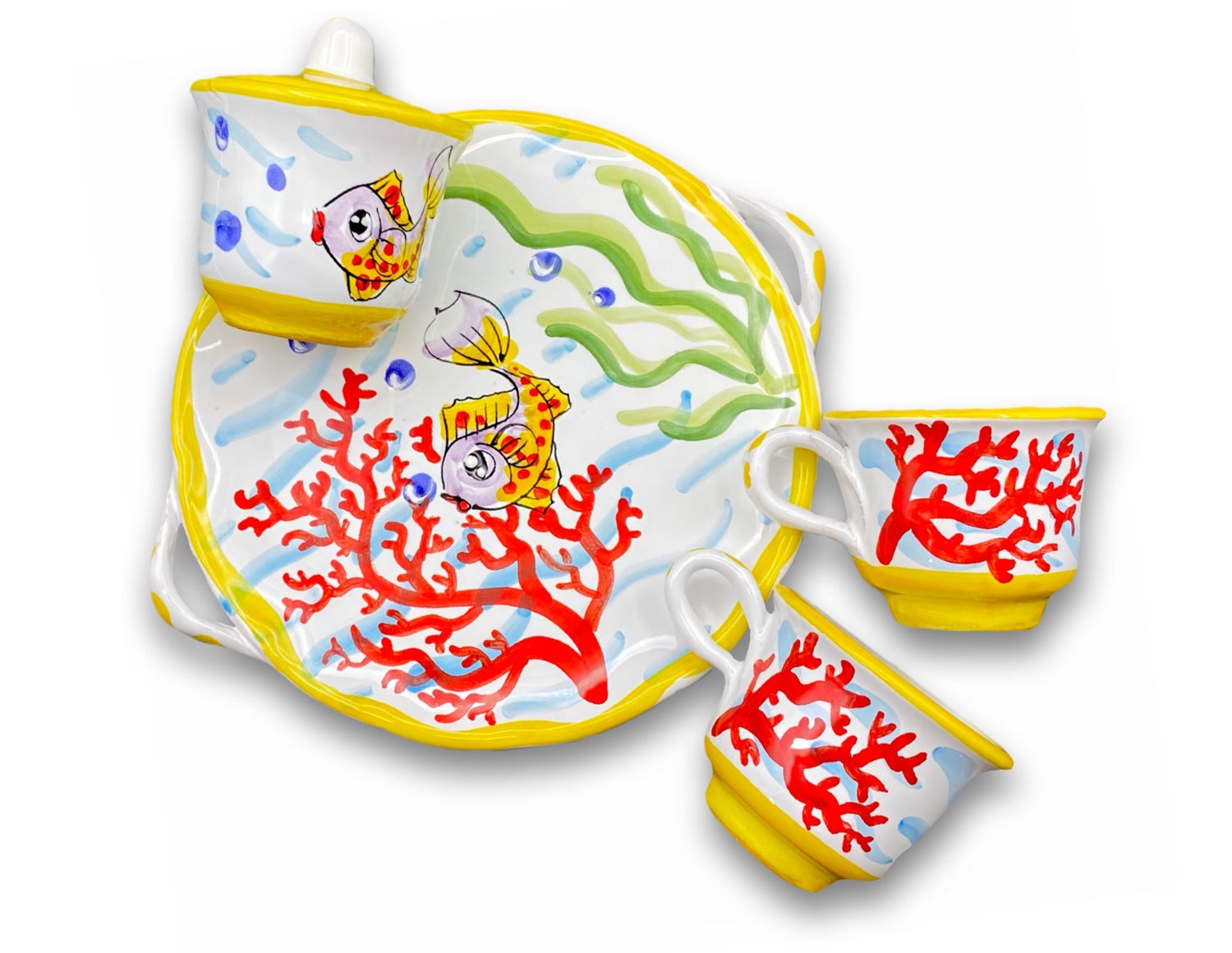 Servizio Caffè X 2 + Zuccheriera in ceramica vietrese DECORO FONDO MARE