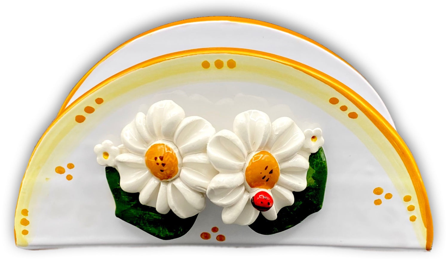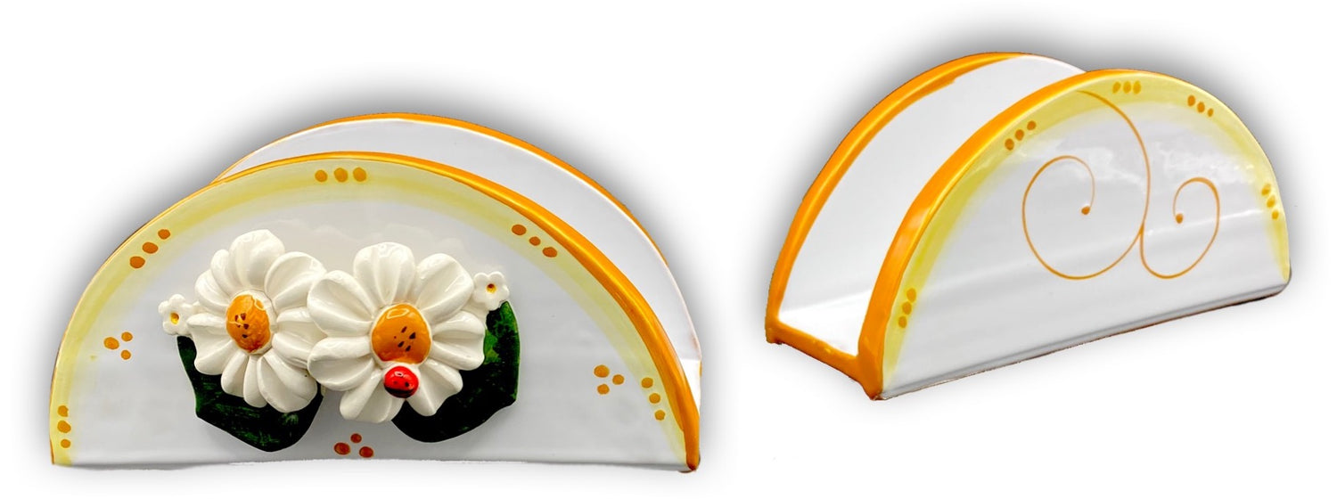 Porta tovaglioli Mezza Luna in ceramica vietrese APPLICAZIONE MARGHERITE