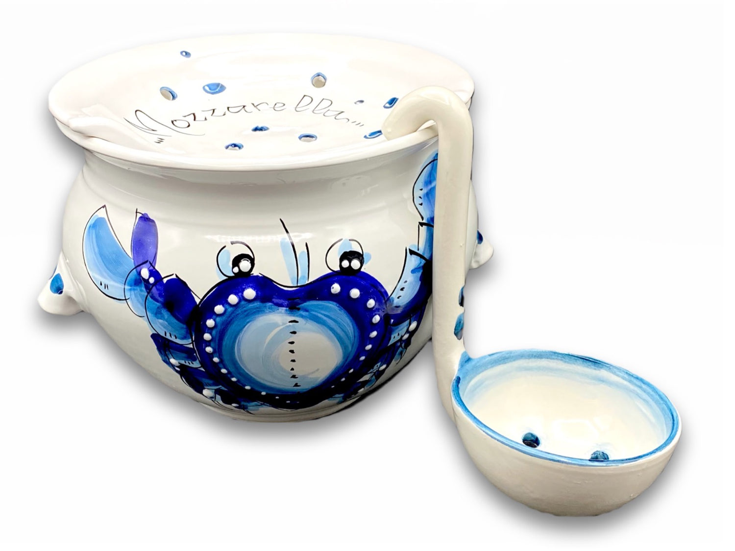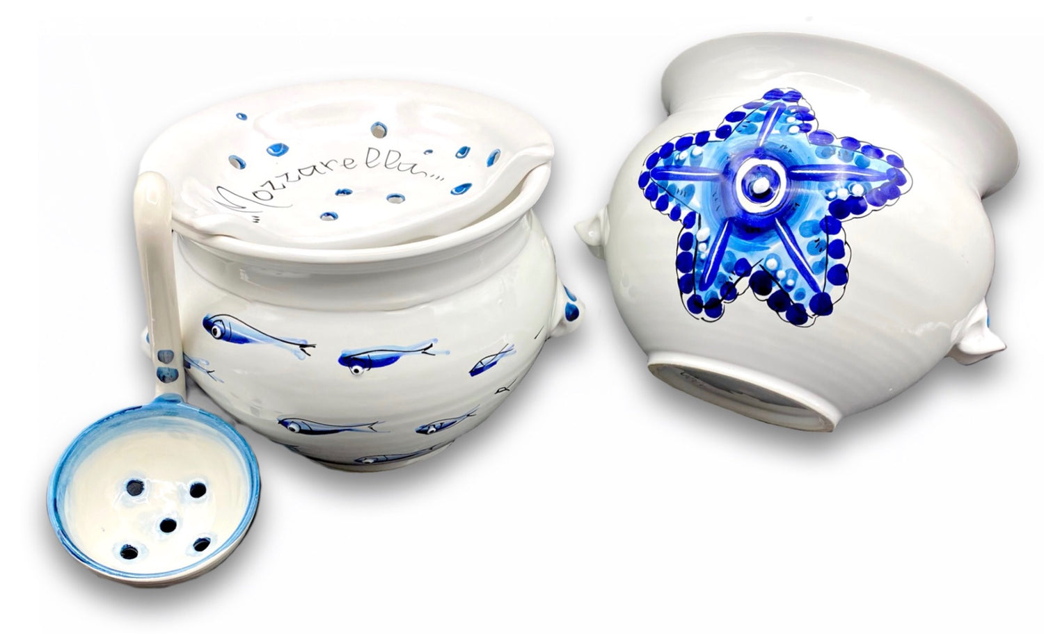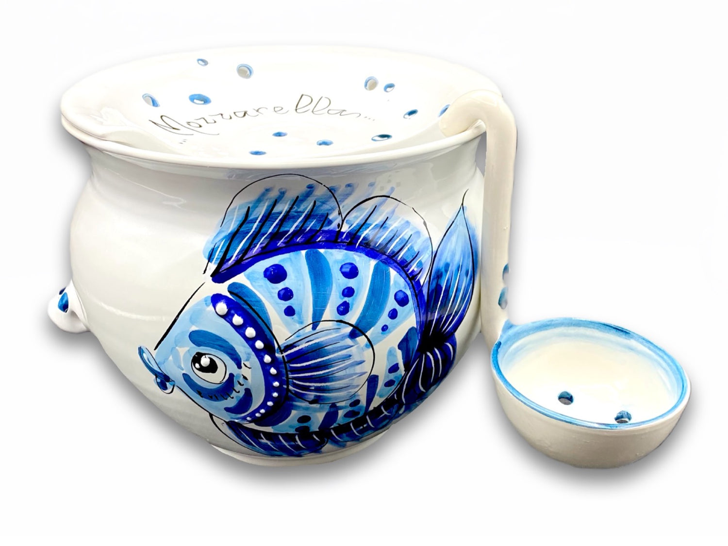 Porta Mozzarella svasato con mestolo in ceramica vietrese MARE MAGNUM