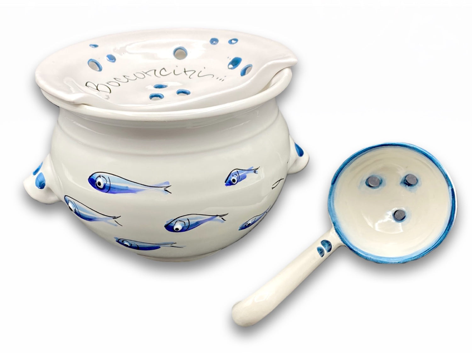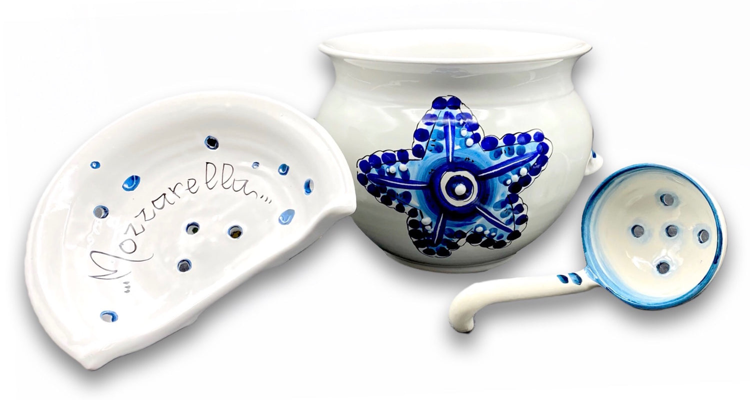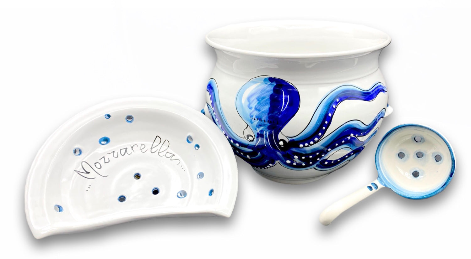 Porta Mozzarella svasato con mestolo in ceramica vietrese MARE MAGNUM