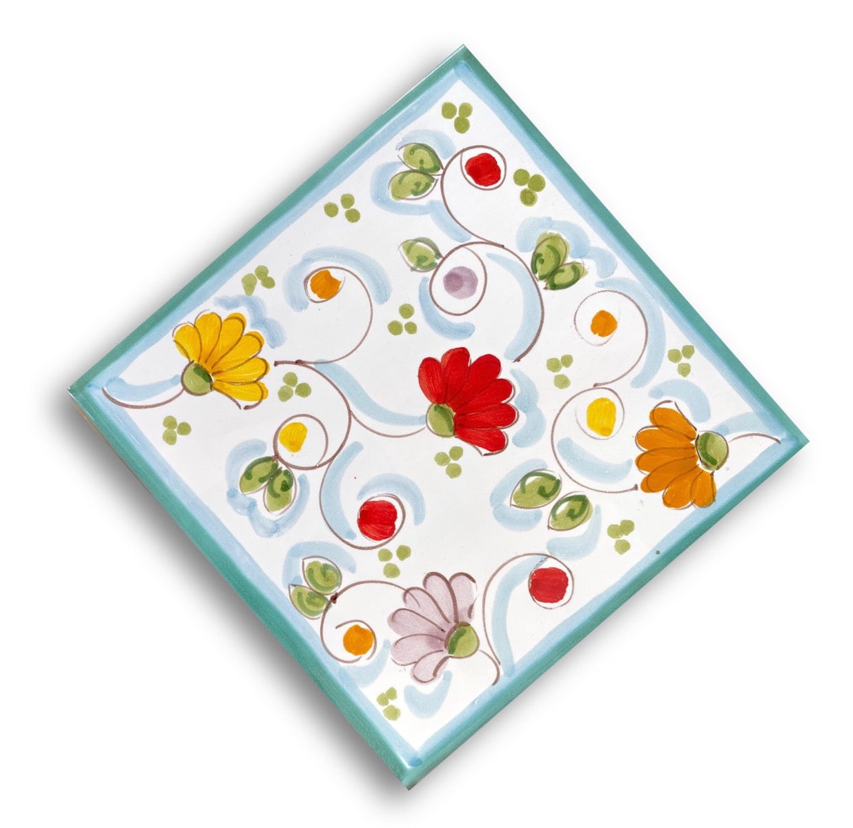 Mattonella in ceramica vietrese, ideale per i tuoi rivestimenti da interno o esterno, decorata a mano da esperti artigiani italiani.