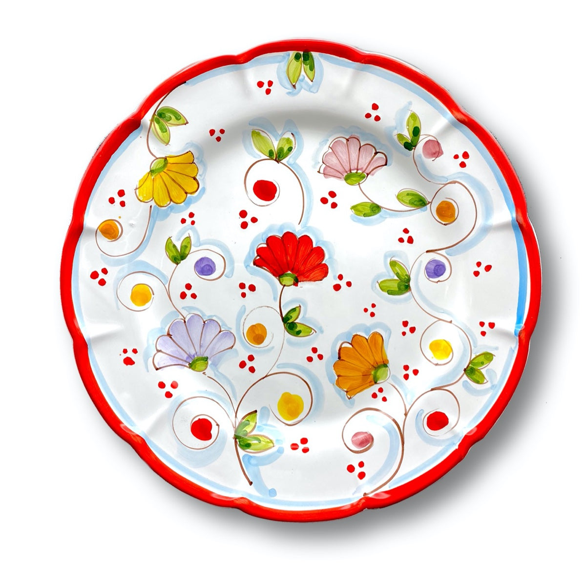 Piatto da tavola in ceramica vietrese interamente decorato a mano da esperti artigiani italiani, il cui lavoro minuzioso rende unica e preziosa la realizzazione di ogni singolo dettaglio.