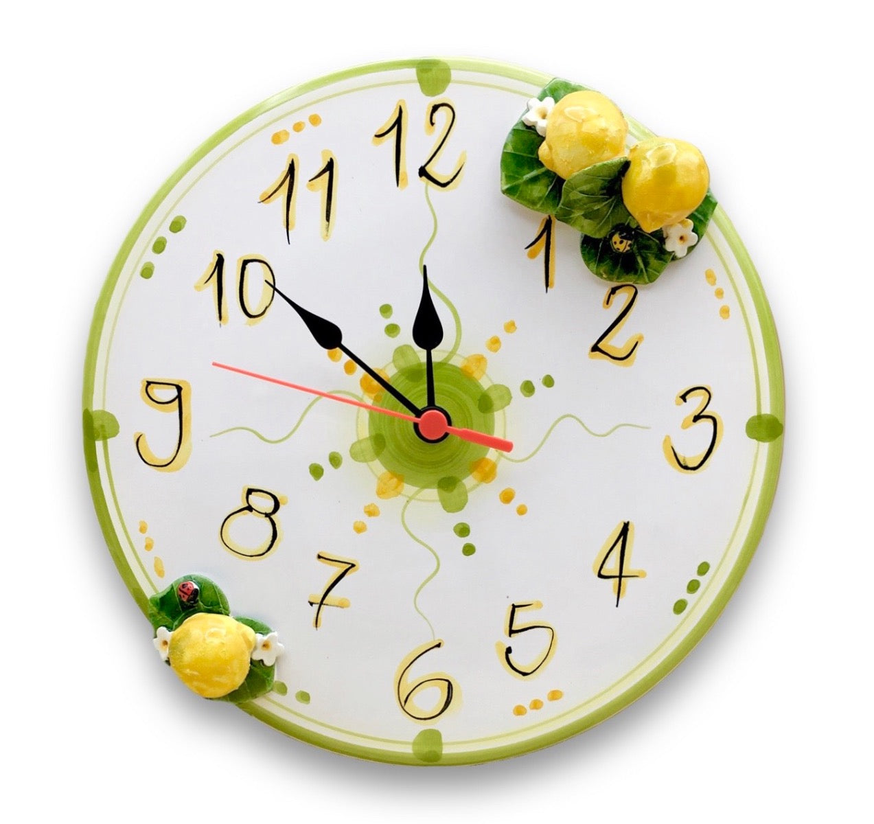 Orologio tondo da muro, in ceramica vietrese, completamente realizzato a mano e curato in ogni dettaglio da esperti maestri della ceramica italiana.