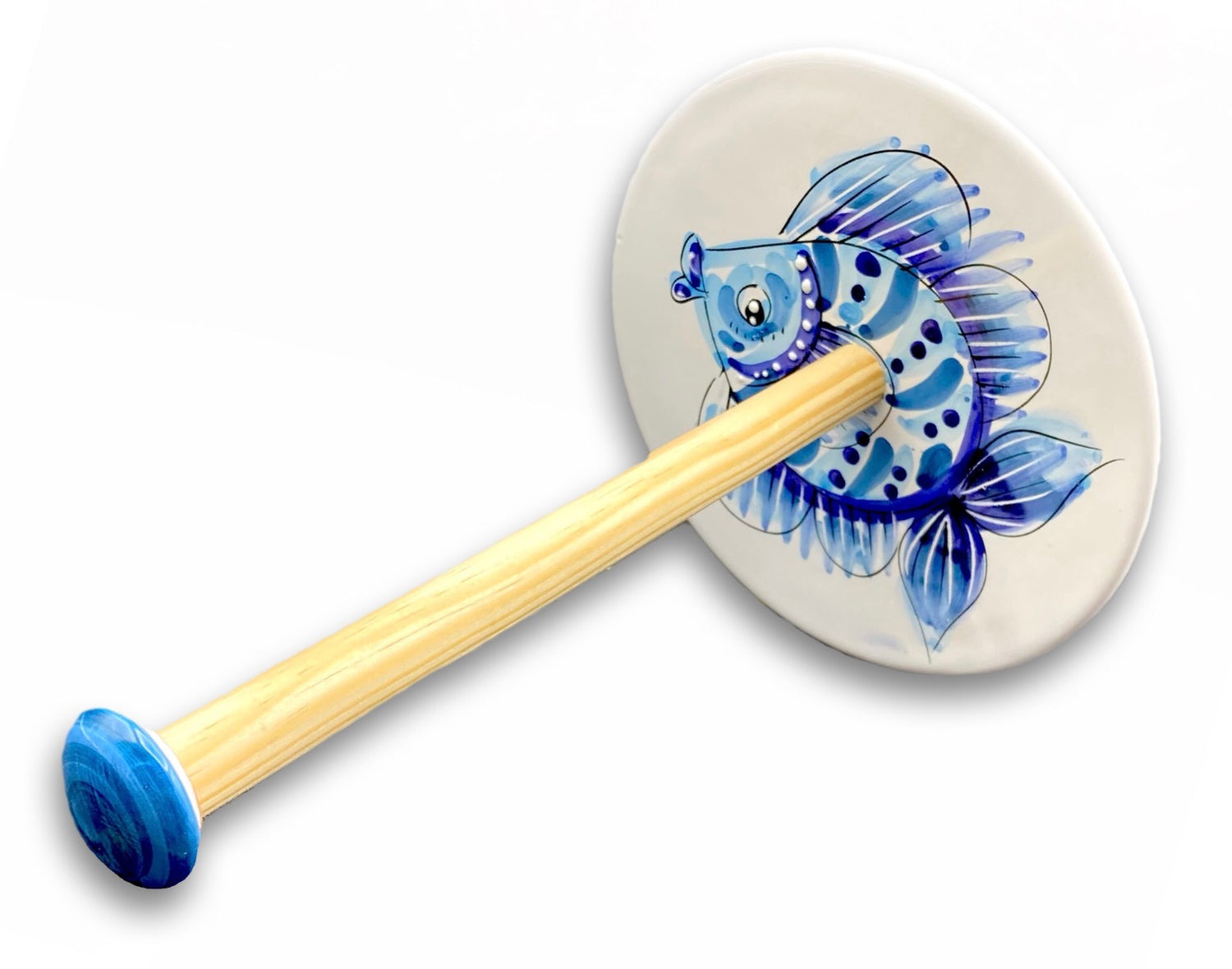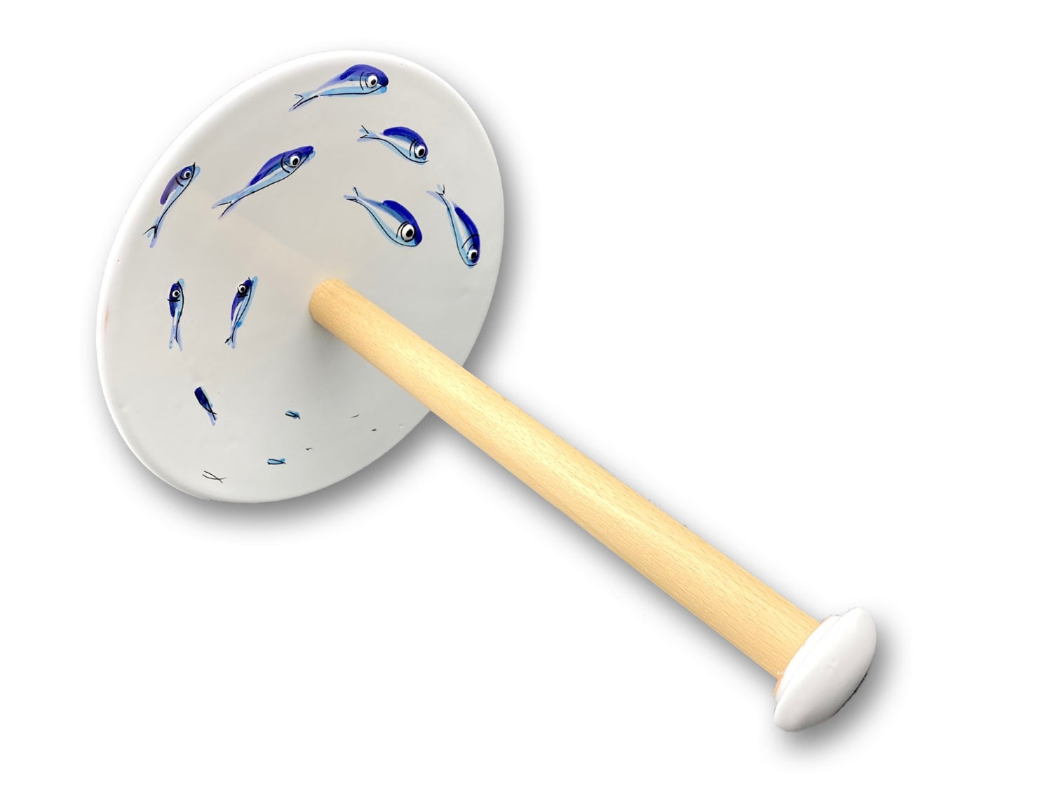 Porta Scottex in ceramica vietrese con asta in legno MARE MAGNUM