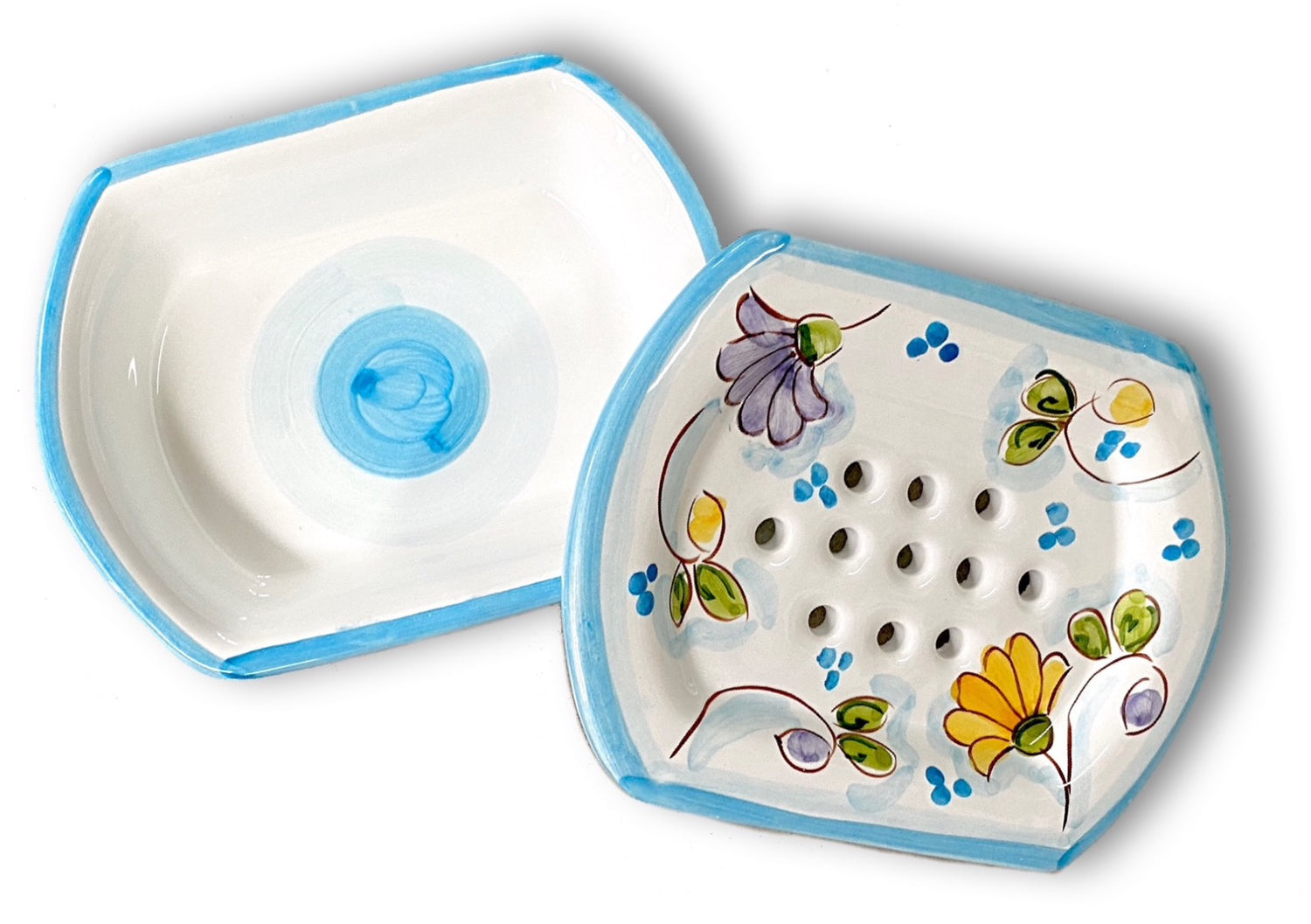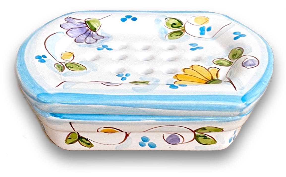 Contenitore porta saponetta in ceramica vietrese, decorata completamente a mano secondo la tradizione ceramista di esperti artigiani italiani.